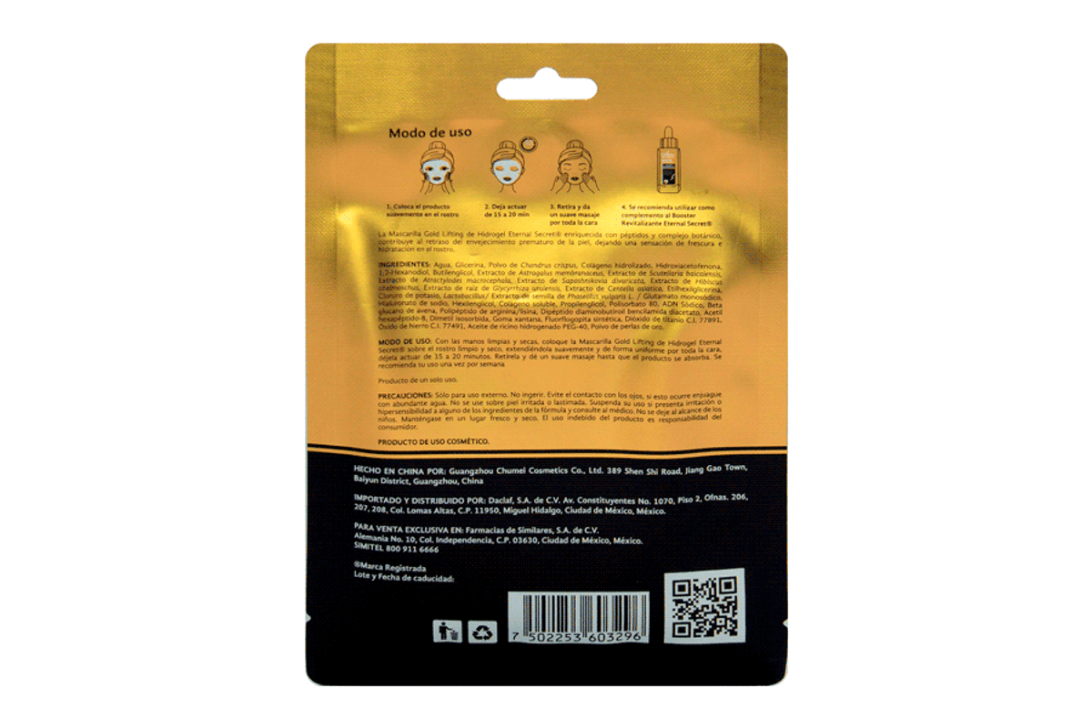 Mascarilla facial dorada Eternal Secret