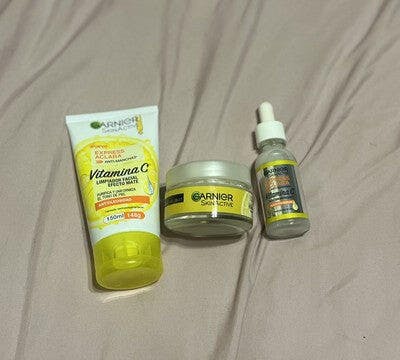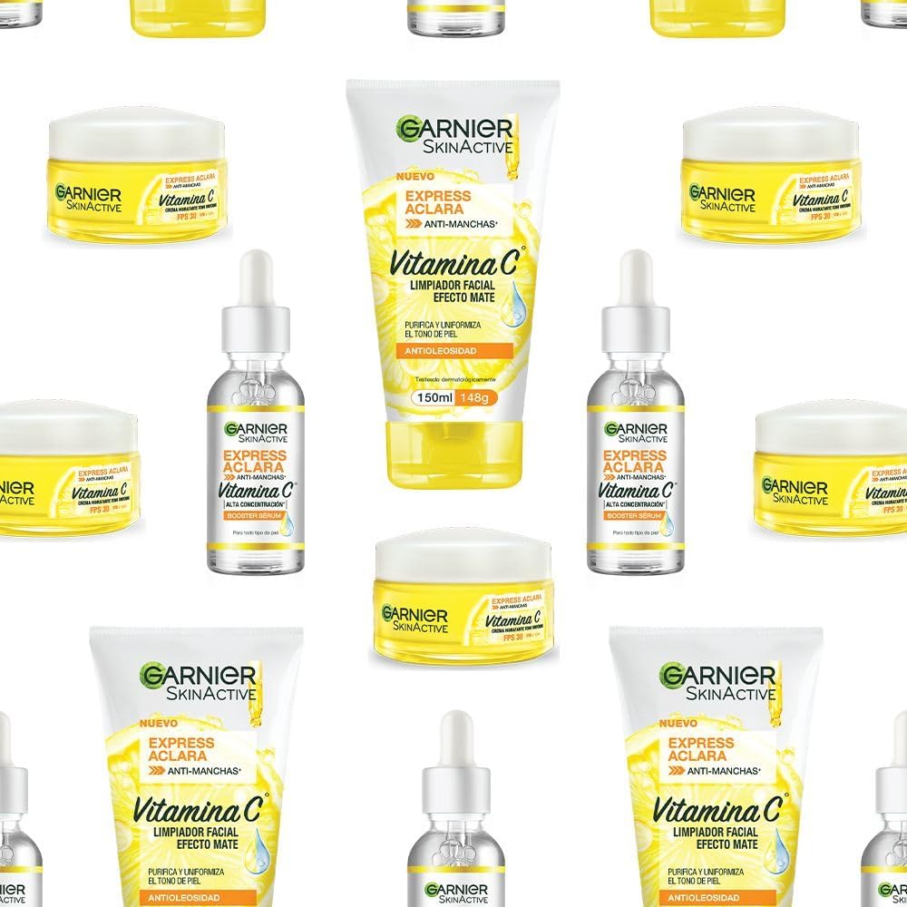 Kit de cuidado de la piel con vitamina C Aclara de Garnier Express (3 piezas): sérum, crema hidratante y limpiador facial